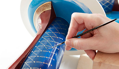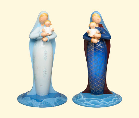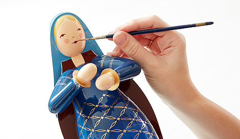 The form of the Madonnas that are now returning to the collection is based on an original historic design. When it came to the color scheme, rather than stick to the simple original design, we set ourselves the challenge of devising some new artistic variations. The result: two Madonnas, each very different in appearance. While the Madonna in the dark-blue dress exudes elegance, the one with the pale-blue robe touches us with her gentle demeanor. Regardless of which version you choose, the skill and artistry that has gone into their painting means these impressive large figurines represent the master craftsmanship of our workshops like no others.