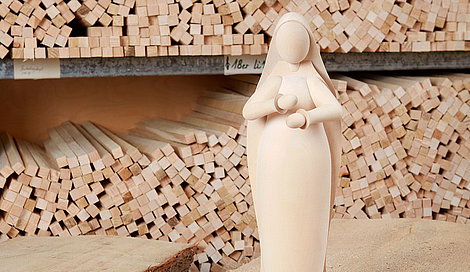 Despite carrying out extensive research, the question of how and when the large Madonna was designed has never been fully answered. It is also not known whether Grete Wendt’s interest in the Virgin Mary was religious, or if it was a more humanistic view of the Madonna as a depiction of a mother and child. What we do know is that she particularly admired a specific painting of the Madonna, the “The Virgin and Child with a Pear” by Albrecht Dürer (1471-1528). A reproduction of this work hung on the wall of her living room.