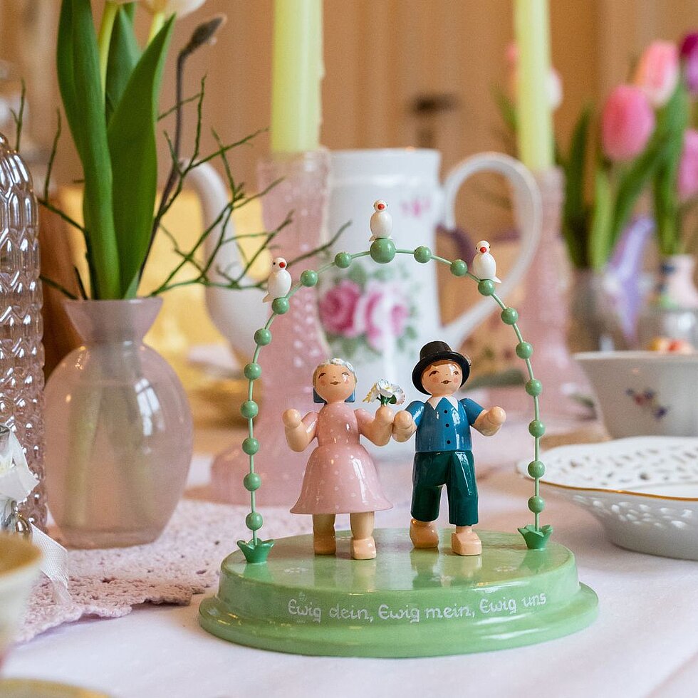 Year after year, a wedding anniversary is a wonderful opportunity to relive memories of the special day. The expressive Loving Couple under the Arch embody the idea that love will never fade. Since love is as multifaceted as life itself, designs showing two women or two men walking through the pearly archway are also available. The figurine can be inscribed with the anniversary date, names or a message.